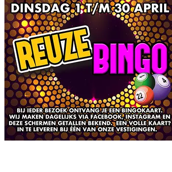 Ontvang bij ieder bezoek een bingokaart. Wij maken dagelijks via Facebook, Instagram.