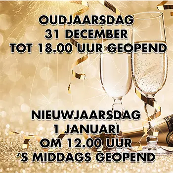 Op dinsdag 31 december en woensdag 1 januari hebben wij aangepaste openingstijden.